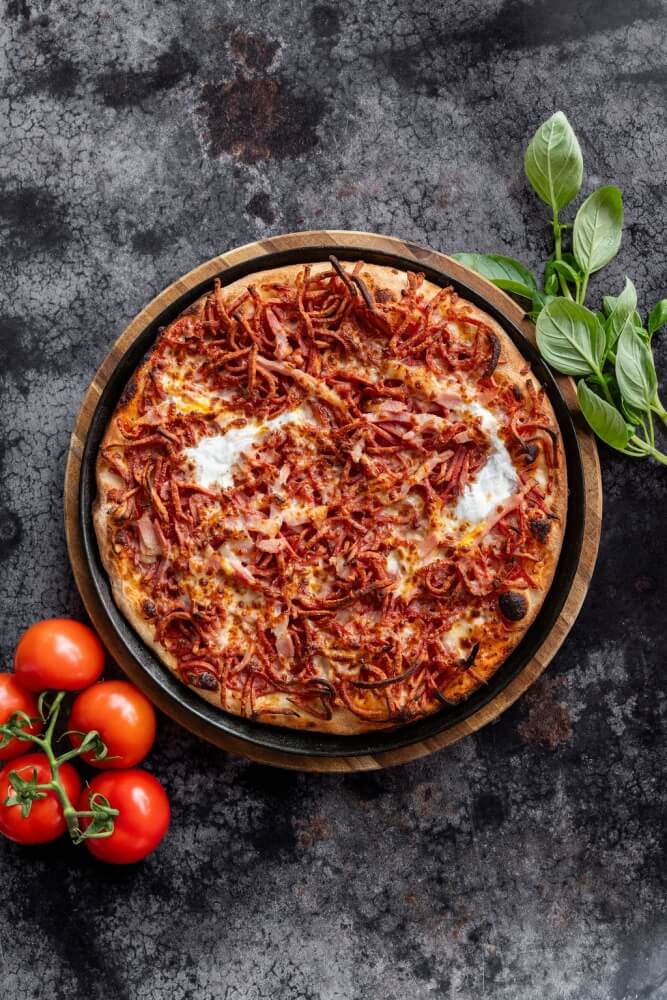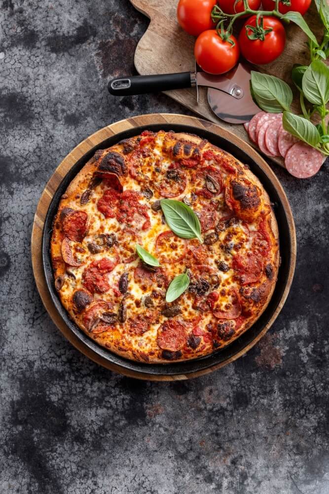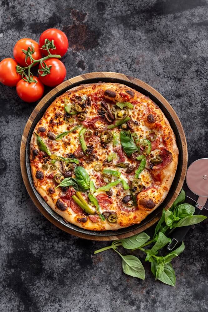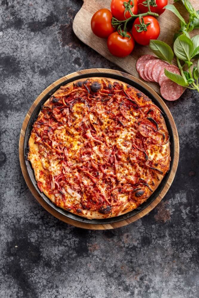Italian tomato, mozzarella, pepperoni, capsicum,olives, jalapeno & chilli