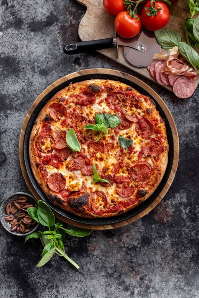 Italian tomato, olives, oregano, pepperoni & fresh basil