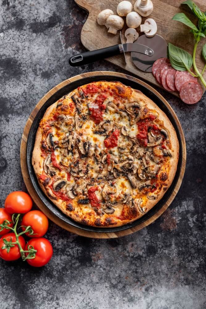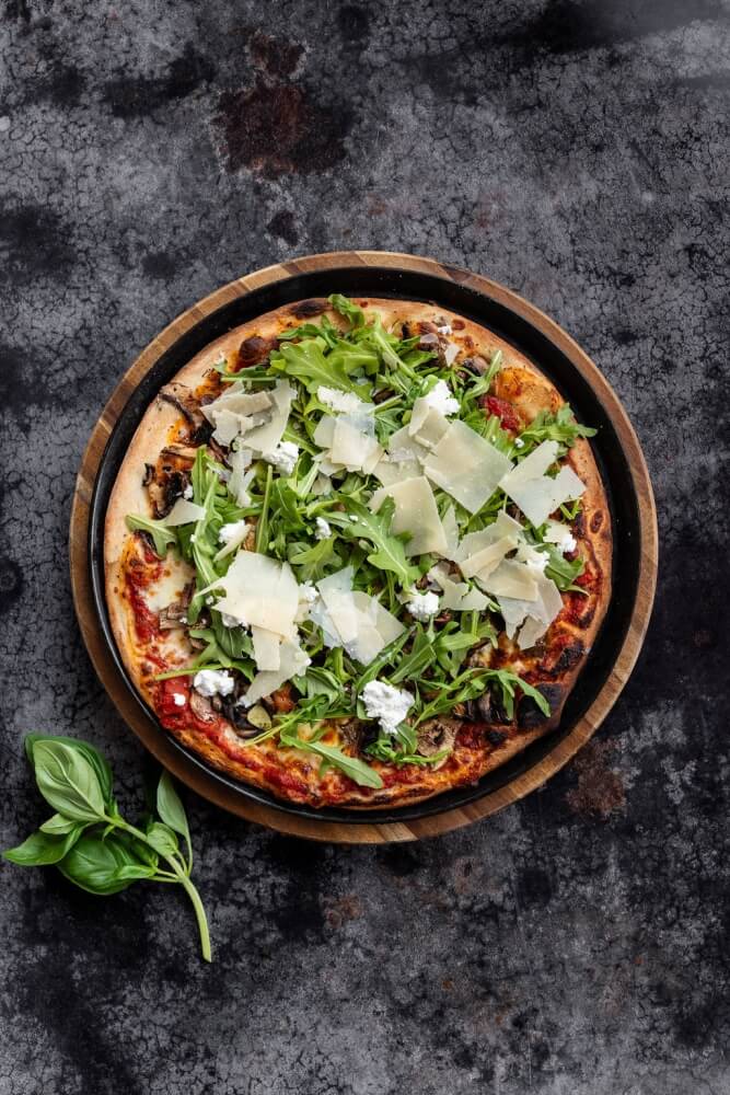 Italian tomato, mozzarella, mushroom, rocket shaved parmesan, truffle oil & fresh basil