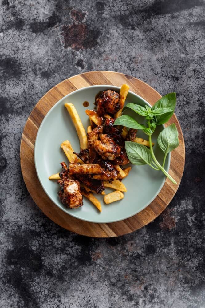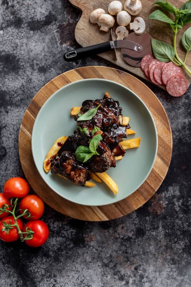 Tender, slow cooked BBQ pork ribs, served with crispy golden chips