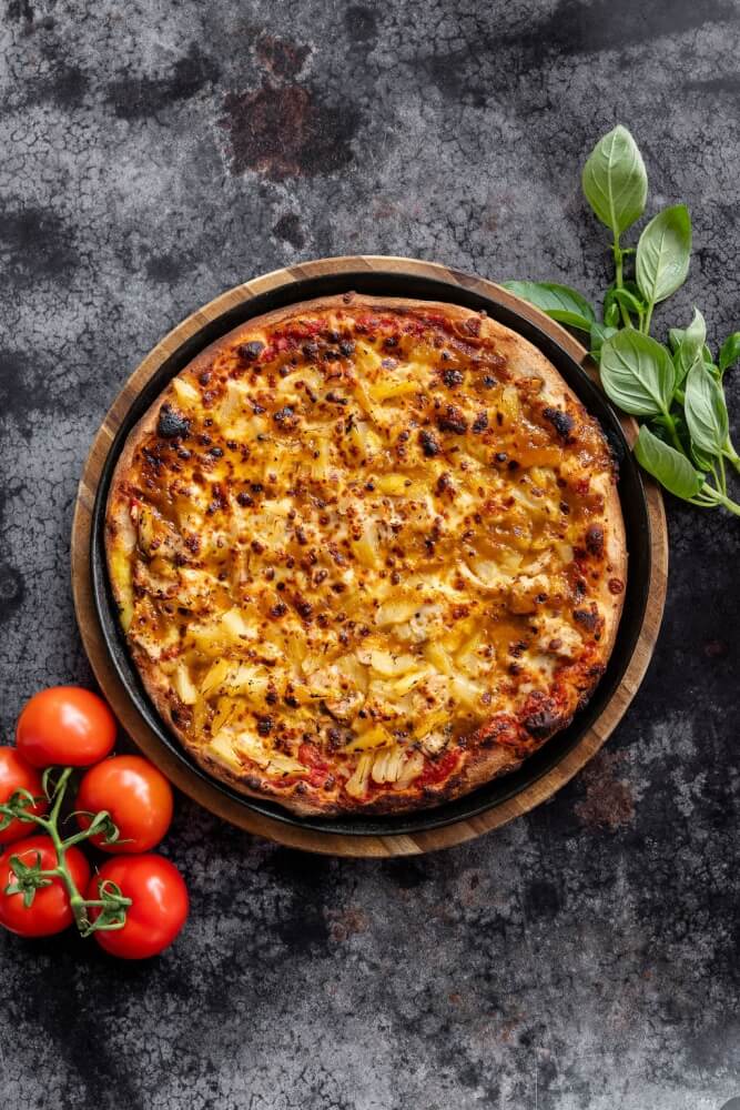 Italian tomato, mozzarella, onions. pulled chicken. pineapple & BBQ sauce